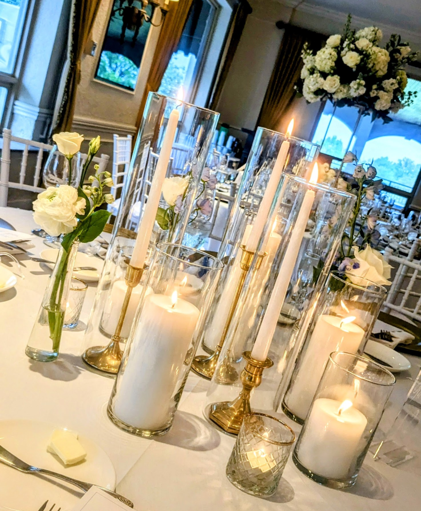 —3 XL vases with choice of (gold candlesticks, black Candlesticks or crystal).